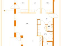 - Pesutilojen varusteet: WC-istuin, pesukoneliitäntä, peilikaappi, suihku ja suihkuseinä (kaksi suihkuovea, jotka muodostavat kaapin). Erillisten WC:n lukumäärä: 1. Erillisen WC:n varusteet: WC-istuin, pesuallas, allaskaappi ja peilikaappi.