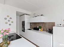 - Keittiön varusteet: Jääkaappipakastin, erillisuuni, liesi, liesituuletin, astianpesukone, keittiösaareke ja mikroaaltouuni. Liesi: Induktioliesi. Työtason materiaali: Kivi. Upea v. 2021 täysin uusittu valkoinen keittiö kivitasoin.