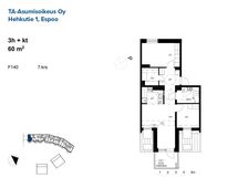Tässä viihtyisässä asunnossa on avara ja toimiva pohjaratkaisu. Keittiö on olohuoneen kanssa yhtenäistä tilaa. Makuuhuoneiden yhteydessä on kaappitilaa ja asunnossa on lisäksi vaatehuone. Olohuoneesta on kulku lasitetulle parvekkeelle, joka toimii lisähuoneena alkukeväästä myöhäiseen syksyyn. Keittiössä on valmiina astianpesukone ja kylpyhuoneessa on tilavaraukset pyykinpesukoneelle ja pesutornille. Saunavuoron voi halutessaan varata viihtyisästä talosaunasta.