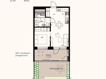 - Huoneistoala 37,5m2 + terassi n. 11m2 + piha n. 39m2