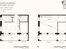 Tässä ylimmän kerroksen kulmahuoneistossa yhdistyvät vaikuttava arkkitehtuuri ja toimiva asuminen. Lähes 4,4 metrin huonekorkeus ja valtavat ikkunat luovat huikean tilan ja valon kokemuksen. Asunnon 17,5 m² parvi toimii kuin lisähuone, tarjoten täydellisen paikan esimerkiksi työskentelyyn, vierashuoneeksi tai rentoutumiseen säilyttäen samalla olohuoneen avaruuden ja esteettömyyden. Fiksusti suunniteltu pohjaratkaisu takaa sujuvan arjen ilman hukkaneliöitä. Avoin olohuone ja moderni avokeittiö sulautuvat yhtenäiseksi kokonaisuudeksi, joka kutsuu viihtymään ja nauttimaan arjesta. Vesikiertoinen lattialämmitys takaa käyttömukavuuden ja helpon sisustamisen.