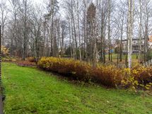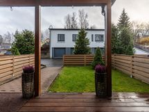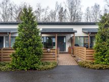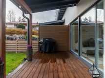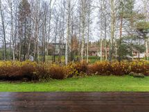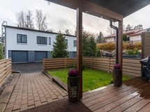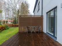 Etupihalla on osittain katettu terassi, jossa on hyvin tilaa ruokailuryhmälle, grillille ja rentoon oleskeluun. Aurinkoinen eteläsuunta takaa valoa ja viihtyisyyttä pitkin päivää. Takapihan terassilta avautuvat upeat, vehreät näkymät puistomaisiin maisemiin. Rauhallinen sijainti ja näkymien tuoma avaruus luovat ihastuttavan yksityisyyden ja luonnonläheisen tunnelman.