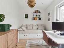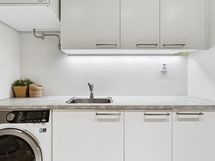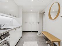 Alakerrasta löytyvät kodin muut tilat: Upea saunaosasto kahdella suihkulla tarjoaa arkeen ripauksen luksusta ja täydellisen paikan palautumiseen. Tilava kodinhoitohuone helpottaa arkea ja sen yhteydessä sijaitsee myös erillinen wc. Portaiden alta löytyy arvokasta lisäsäilytystilaa, joka auttaa pitämään kodin järjestyksessä. Lisäksi alakerrassa on kaksi huonetta – varsinainen makuuhuone sekä monikäyttöinen tila, joka soveltuu mainiosti esimerkiksi vieras- tai työhuoneeksi.