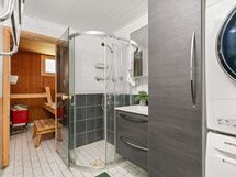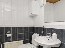 - Pesutilojen varusteet: Suihku ja lattialämmitys. Pesutilojen kuvaus: Kylpyhuonetta uusittu 2014: kalusteet, suihkukaappi, allaskaappi, peilikaappi, pyykkikaappi. Pesukoneliitäntä, paikka pesutornille. Erillisten WC:n lukumäärä: 1. Erillisen WC:n varusteet: WC-istuin, lattialämmitys, bidee-suihku ja pesuallas.