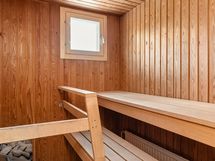 - Ikkunallinen sauna, jossa sähkökiuas. Lasinen saunan ovi 2014.