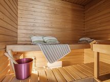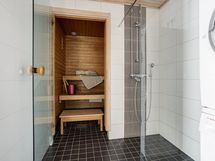 - Kiuas: Sähkökiuas. Saunssa on lasiovi ja sähkökiuas.