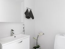 - Pesutilojen kuvaus: Suihku, suihkuseinä, wc-istuin, tila pesutornille, pk-liitäntä, peilikaappi, pesuallas, allaslaatikosto ja huoneistokohtainen ilmanvaihtokone. Seinät laattaa ja lattia klinkkeriä. Erillisen WC:n kuvaus: Wc-istuin, peilikaappi, pesuallas, allaslaatikosto. Seinät maalattu, lattia laattaa.