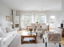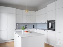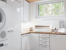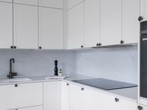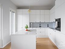 - Parkettilattia, maalatut seinät. Charmian keittiökaapistot. Siemens studioLinen jääkaappi ja pakastin, erillinen uuni, induktioliesi, liesituuletin ja astianpesukone. Välitila ja tasot kvartsia.