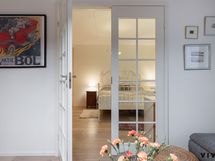 Makuuhuone on poikkeuksellisen suuri, ja sieltä löytyy runsaasti kaappitilaa. Makuuhuoneesta on käynti lasitetulle parvekkeelle, joka suuntautuu rauhalliselle sisäpihalle – täydellinen paikka nauttia aamukahvista tai ilta-auringosta.