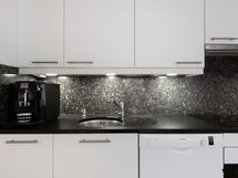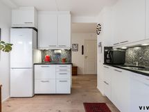 Keittiö on reilun kokoinen ja sinne mahtuu helposti ruokailuryhmä – täydellinen paikka yhteisille aterioille ja arkiselle oleskelulle.