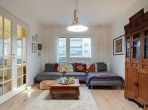 Olohuone on avara ja valoisa, ja tilanjako mahdollistaa monipuolisen sisustamisen.
