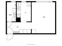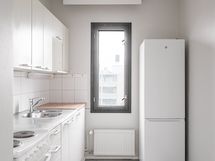 - Keittiön varusteet: Jääkaappipakastin, uuni, liesituuletin ja liesi. Liesi: Sähköhella.