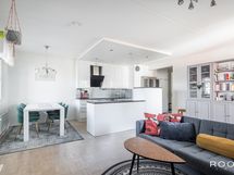 - Keittiön varusteet: Uuni, liesi, liesituuletin, astianpesukone, keittiösaareke, jääkaappi ja erillinen pakastin. Liesi: Keraaminen liesi. Työtason materiaali: Kivi.