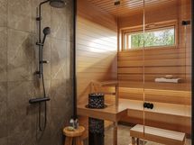 On the entrance level, you’ll find a hallway that leads to the kitchen and a few steps down to the living room. From the living room, you can enjoy beautiful forest views. On this level, there is also a storage/utility room that can be used, for example, as a small gym. A separate WC is conveniently located near the entrance.