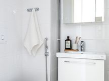 - Varustus: suihkuseinä, pesukoneliitäntä, wc-istuin, suihku, peilikaappi, kiinteät valaisimet, kylpyhuonekaapisto. Varustus: lattiakaivo, peilikaappi, bidee-suihku.