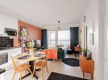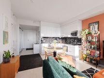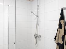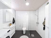 - Varustus: suihkuseinä, pesukoneliitäntä, lattialämmitys, wc-istuin, suihku, peilikaappi, kiinteät valaisimet, kylpyhuonekaapisto.