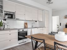 - Keittiön varusteet: Jääkaappipakastin, liesi, astianpesukone, liesituuletin ja uuni. Liesi: Induktioliesi. Työtason materiaali: Kivi. Topi-keittiö. Työtasot kvartsia.