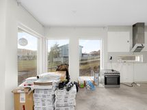 - 1. kerroksessa olohuone, makuuhuone, keittiö- ja ruokailutila, kylpyhuone, eteinen, terassi
