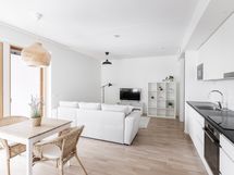 - Varusteet: jääkaappipakastin, integroidut kodinkoneet, integroitu astianpesukone. Työtaso: kivitaso. Liesi: induktioliesi, erillisuuni, mikroaaltouuni, liesikupu. Toimiva keittiö (Puustelli), jossa hyvin kaappi- ja laskutilaa. Laadukkaat Bosch kodinkoneet