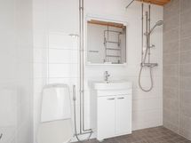 Alakerrassa on kodikas olohuone ja käytännöllinen keittiö, jotka muodostavat viihtyisän yhteisen oleskelutilan. Lisäksi löydät täältä yhden makuuhuoneen – täydellisen rauhaa ja omaa tilaa kaipaavalle – sekä kylpyhuoneen.