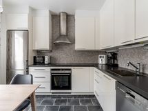 - Liesi: induktio, erillisuuni. Työtasot: laminaatti. Kylmäsäilytys: jääkaappi/pakastin. Varustus: astianpesukone, liesituuletin / suodatin.