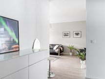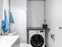 - Varustus: suihkuseinä, pesukoneliitäntä, lattialämmitys, wc-istuin, suihku, peilikaappi.