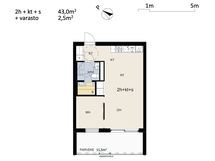 Asunnon neliöt on tehokkaasti hyödynnetty ja arki on helppoa. Näihin neliöihin mahtuu eteinen, iso keittiö, olohuone, työpiste, makuuhuone, sekä kylpyhuone omalla saunalla. Lisätilaa säilytykseen löytyy omasta ulkovarastosta muutaman metrin päästä ulko-ovelta. Ison (n. 11m2) parvekkeen voi halutessaan lasittaa ylös saakka.
