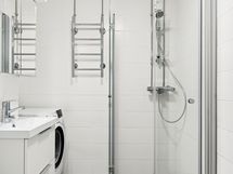 - Pesutilojen varusteet: WC-istuin, suihku, suihkuseinä, pesukoneliitäntä ja lattialämmitys.