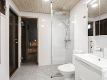 - Sadesuihku, suihkuseinä, wc-istuin, käsisuihku, pesuallas, allaslaatikosto, peilikaappi, pesukoneliitäntä, pyyhekuivain. Seinät ja lattia laattaa, lattialämmitys. Pesuhuone remontoitu 2024. WC: Wc-istuin, käsisuihku, pesuallas, allaslaatikosto, peilikaappi. Seinät ja lattia laattaa. Wc remontoitu 2024.