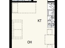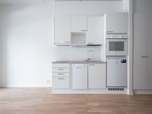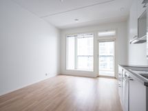 Länteen avautuvilla ikkunoilla ja isolla (7,5 m2) lasitetulla parvekkeella varustettu vuonna 2023 valmistunut valoisa yksiö. Tässä asunnossa on korkea huonekorkeus (285 cm). Huoneistossa tilantuntua lisää ja käytettävyyttä parantaa 140 cm leveä parvi, jonka alla seisomakorkeus.