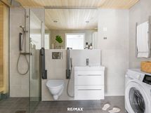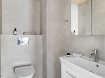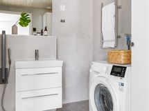 - Pesutilojen varusteet: WC-istuin, suihku, pesukoneliitäntä, pesukone, lattialämmitys, peili, bidee-suihku, pesuallas, allaskaappi, suihkuseinä ja pyyhekuivain. Erillisten WC:n lukumäärä: 1. Erillisen WC:n varusteet: WC-istuin, pesuallas, peilikaappi ja allaskaappi.