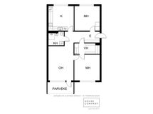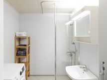 - Varustus: suihkuseinä, pesukoneliitäntä, wc-istuin, suihku, peilikaappi.