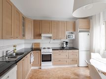 - Liesi: sähköliesi. Kylmäsäilytys: jääkaappi/pakastin. Varustus: liesituuletin, astianpesukone.