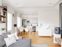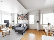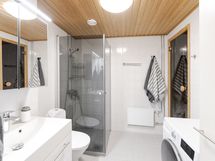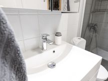 - Varustus: suihkuseinä, pesukoneliitäntä, lattialämmitys, wc-istuin, suihku, peilikaappi.