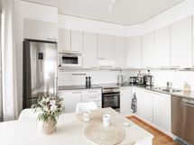 - Liesi: keraaminen, sähköliesi. Työtasot: laminaatti. Kylmäsäilytys: jääkaappi/pakastin. Varustus: liesikupu, astianpesukone.