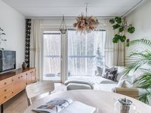 Nyt voit lopettaa etsimisen, sillä se on tässä. Tässä kahden makuuhuoneen kodissa on rauhallinen ja harkittu tunnelma, joka syntyy toimivasta pohjaratkaisusta, vaaleasta yleisilmeestä ja luonnonvalon runsaudesta.