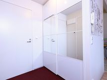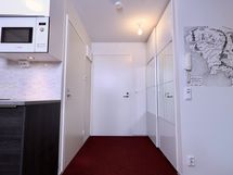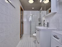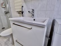 - Pesutilojen varusteet: WC-istuin, suihku, suihkuseinä, suihkukaappi, pesukoneliitäntä, allaskaappi, pesuallas, peilikaappi ja kodinhoito kaappi.