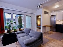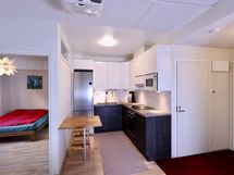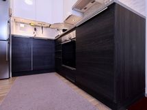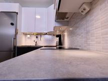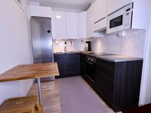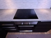 - Keittiön varusteet: Jääkaappi, astianpesukone, uuni, liesi, liesituuletin, jääkaappipakastin ja mikroaaltouuni. Liesi: Induktioliesi. Työtason materiaali: Kivi ja laminaatti.