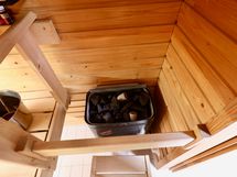 - Kiuas: Sähkökiuas. Vähällä käytöllä ollut, erittäin siistissä kunnossa oleva sauna.