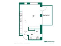 - 1h, avokeittiö, kph/wc, lasitettu parveke