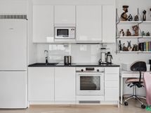 - Jääkaappi/pakastin, mikroaaltouuni, astianpesukone, keraaminen liesi, erillisuuni, kaapistot, kiinteät valaisimet.
