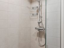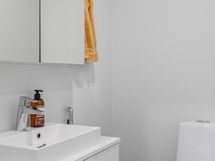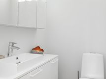 - Pesutilojen varusteet: Suihku (sadettajasuihku + tavallinen) ja lattialämmitys (vesikiertoinen). Erillisten WC:n lukumäärä: 2. Erillisen WC:n kuvaus: Molemmissa käsisuihku, peilikaappi, allaskaappi.