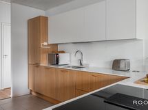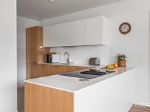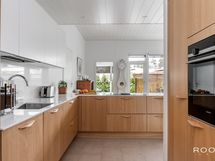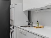 - Keittiön varusteet: Jääkaappipakastin, uuni, liesi, liesituuletin (Elica liesitasossa.) ja astianpesukone (Automaattisesti sulkeutuva hana.). Liesi: Induktioliesi. Työtason materiaali: Ylämaan graniitti täyskvartsitaso. Novartin keittiö.