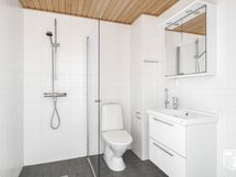 - Pesutilojen kuvaus: Seinät ja lattia laatoitettu, lattalämmitys. Suihku, suihkuseinä, wc-istuin, käsisuihku. Pesuallas, allaskaappi, peilikaappi. Pesukoneliitäntä. Tila pesutornille.