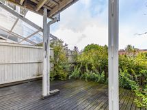 Kohteen etuna on viihtyisä taloyhtiö ja luonnonläheinen sijainti. Tilaratkaisut on myös mietitty käytännönläheisiksi. Yläkerrassa sijaitsevat kolme makuhuonetta, joista päämakuuhuoneesta on käynti parvekkeelle. Myös sauna ja pesuhuone ovat yläkerrassa. Alakerrasta löytyy kodinhoitohuone ja erillis-wc. Rappusten alla on varastohuone. Keittiön ja olohuoneen välillä on puoliseinä, jonka viereen voi kätevästi sijoittaa ruokailupöydän keittiön puolelle. Liesi on keraaminen. Olohuoneesta on pääsy omalle takapihalle, joka on käytännössä kokonaan terassia. Asunnon yläkerrassa on harmaa laminaattilattia, alakerran laminaatti on hieman vaaleampi sävyltään. Kokonaisuus on valoisa ja harmoninen.