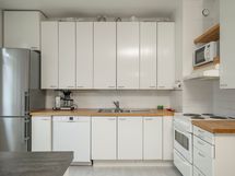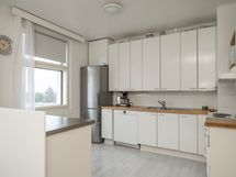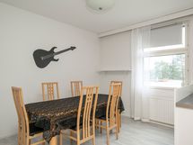 - Keittiön varusteet: Liesi, liesituuletin, astianpesukone ja keittiösaareke. Liesi: Sähköhella. Työtason materiaali: Puu ja laminaatti.