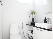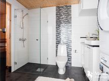 - Pesutilojen varusteet: WC-istuin, suihku, lattialämmitys, suihkuseinä, pesukoneliitäntä, peili, allaskaappi, pesuallas, pesukone ja kuivausrumpu. Erillisten WC:n lukumäärä: 1. Erillisen WC:n varusteet: WC-istuin, peili, lattialämmitys, bidee-suihku, pesuallas ja allaskaappi.