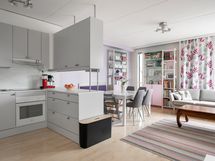 - VARUSTUS: Liesituuletin, uuni, induktioliesi, astianpesukone, jääkaappipakastin ja kaapistot.