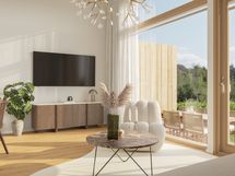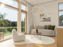 Lisätiedot kalusteista ja kodinkoneista erillisestä kaluste esitteestä. Ruokailutila: Ruokatilan paikka sijoittuu kivasti keittiön yhteyteen.