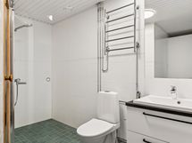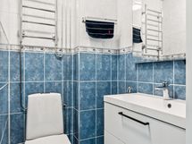 - Tyylikäs ja toimiva kylpyhuone ja erillinen wc. Nauti oman saunan löylyistä. Kylpyhuoneessa ja wc:ssä kummassakin on peili ja allaskaappi, sekä lattialämmitys. Lattia: Laatta. Seinät: Laatta
